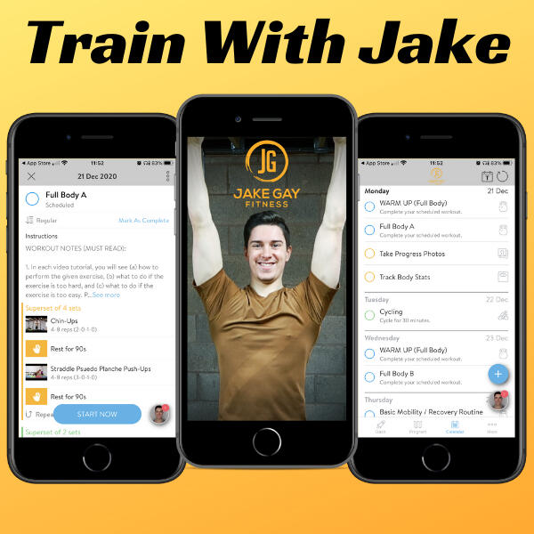 For less than Ā£1 a day for 28 days, you can select from a choice of 3 to 5 day programs from the list below.You don't need to spend your life in the gym. You don't need to follow a 'diet' that makes you miserable. And you don't need to remain feeling lost as to why you aren't seeing your body change the way you want it to.Train With Jake offers programs that will help you build lean muscle, lose body fat, and develop functional strength by using the most effective protocols to get you in the best shape of your life!With access to the JG Coaching App, itās like having a personal trainer in your pocket. 7 days a week, you'll know how long to rest, how many sets and reps, watch videos on how to perform each exercise, track your progress, follow a nutrition guide designed for your calorie intakeā¦and SO many more benefits to help you build the body of your dreams!